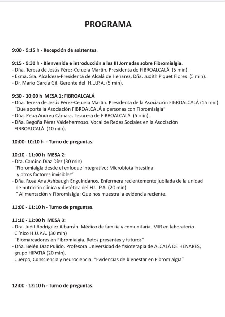 III JORNADAS SOBRE FIBROMIALGIA «Nuevas Investigaciones sobre la Comprensión y el Tratamiento de la Fibromialgia» 12 de Mayo Día Internacional de la Fibromialgia en el Hospital Universitario Príncipe de Asturias.